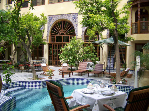 - At Ryad Salama between the two main streets of the medina, you can choose between a Moroccan menu (Dh250) or a delicious fusion of Moroccan and French delicacies (Dh330). Dining is under the stars in the leafy courtyard of this beautiful riad. There's a dining room too, in case of inclement weather. Booking essential 24 hours in advance on 0535 63 57 30 or 0661 10 25 21.